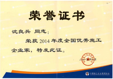 沈良兵主席榮獲全國優(yōu)秀施工企業(yè)家