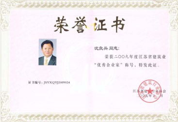 沈良兵主席榮獲09年省建筑業(yè)“優(yōu)秀企業(yè)家”稱號