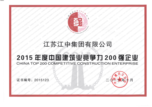 2016年12月8日,中國建筑業(yè)協(xié)會在廣西南寧召開全國建筑業(yè)企業(yè)創(chuàng)新發(fā)展經(jīng)驗交流會,會議對榮獲2015年度中國建筑業(yè)雙200強企業(yè)、2016年度全國建筑業(yè)AAA級信用企業(yè)進行了發(fā)布,我集團榮獲2015年度中國建筑業(yè)競爭力200強企業(yè)。