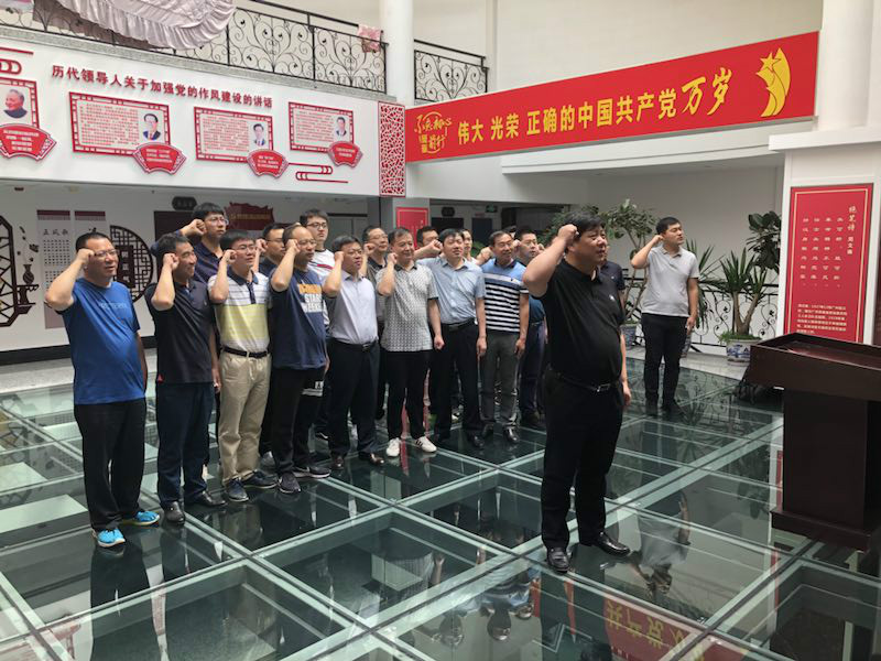 在參觀過程中,全體黨員重溫入黨誓詞,面對鮮艷的黨旗,莊重舉拳宣誓,表達自己對黨忠誠的誓言,表達了為黨的事業奮斗終身的決心。