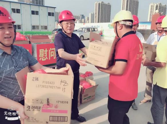 帶著滿滿關切,集團董事局主席沈良兵冒著40度高溫赴大連、濟南、泰安、臨沂等地檢查工程項目,為一線職工送去高溫下的關懷和慰問。董事長馬華、副董事長張躍良等陪同。