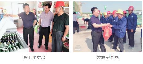在慰問現場,沈主席為一線員工送去了防暑用品,并與他們親切交談,檢查了施工現場,職工生活區,囑咐大家一定要有安全施工意識,嚴格落實好夏季施工的各項防暑降溫措施,保證施工安全,確保工程穩步扎實推進。