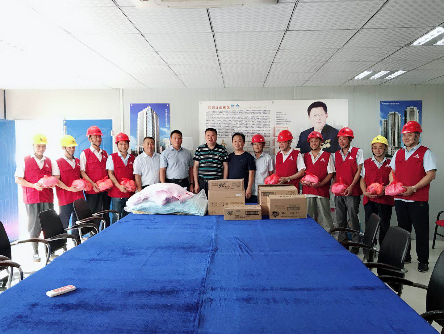 繆局長給項目工地一線職工送上夏季清涼慰問品。
