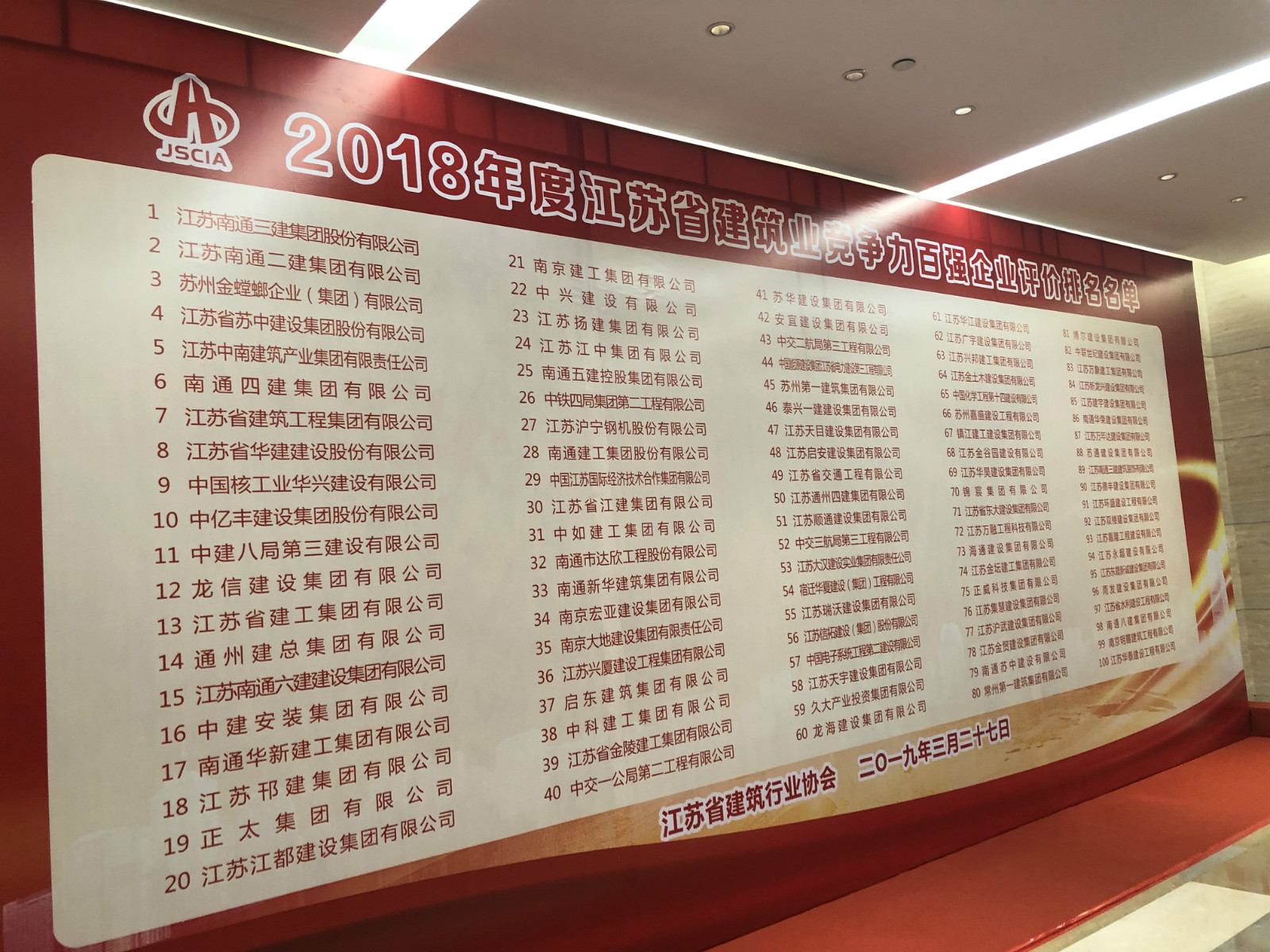 3月26日,江蘇省建筑行業(yè)協(xié)會2019年會暨2018年度江蘇省建筑業(yè)“雙百強”企業(yè)評價排名發(fā)布會在江蘇海門隆重舉行。江蘇省住房和城鄉(xiāng)建設廳、南通市住房和城鄉(xiāng)建設局、海門市有關領導以及協(xié)會領導、會員企業(yè)代表600多人參加會議。