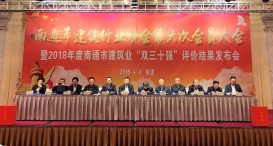 4月2日,南通市建筑行業協會召開五屆八次會長(常務理事)會、第六次會員大會暨2018年度南通市建筑業“雙三十強”評價結果發布會。江蘇集團董事局主席沈良兵,總裁沈鋒應邀出席會議。
