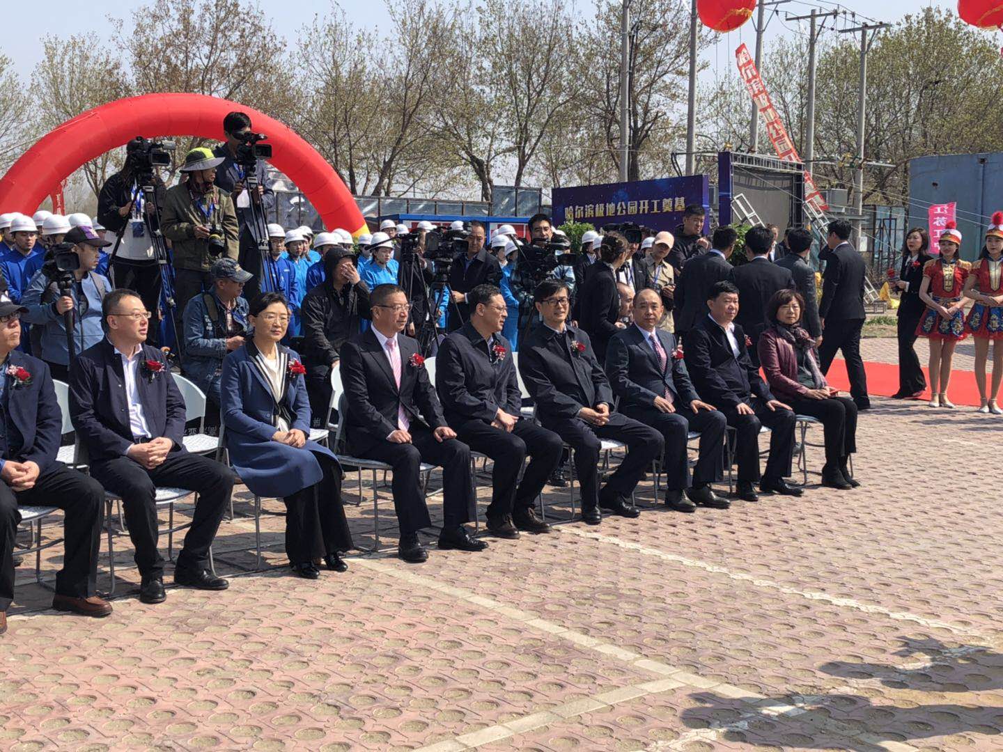 429日上午10時,彩旗飄舞,禮炮齊響,哈爾濱極地公園(極地館二期)開工奠基儀式隆重舉行。黑龍江省文化和旅游廳、哈爾濱市松北區人民政府、哈爾濱市文化廣電和旅游局領導、大連圣亞旅游控股總裁為項目奠基啟幕。我集團公司馬華董事長應邀出席奠基儀式,并與來賓一道手持金鍬,項目培土奠基。集團東北公司極地公園項目部約100名員工統一著裝,共同見證了奠基儀式。