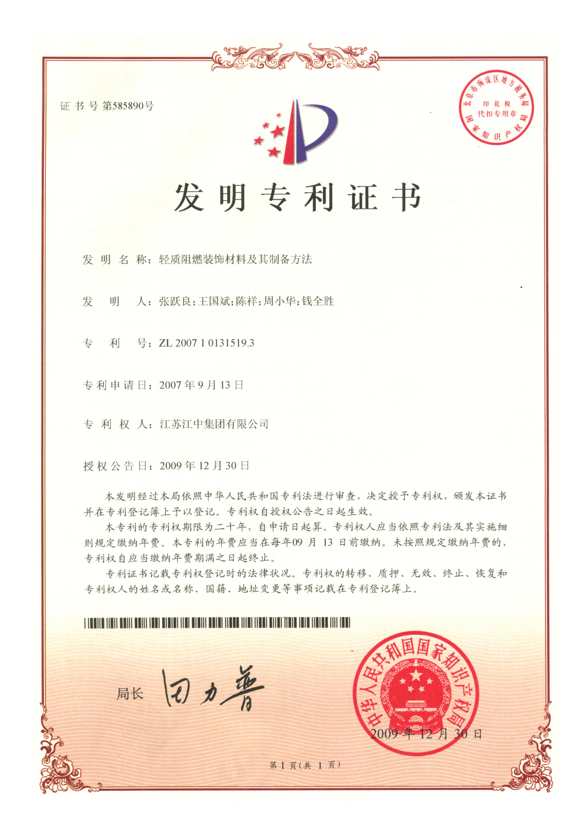 輕質阻燃裝飾材料及其制備方法(2009.12.30)